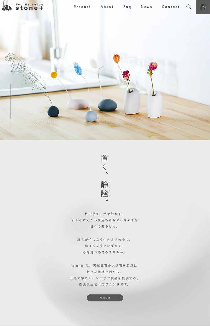 Shopify(ショッピファイ)で制作されたECサイト「stone+|ストーンプラス」をリニューアルしました。ECサイトのデザイン、構築だけでなく、撮影、撮影された写真のレタッチ、コピーライティングに渡るクリエイティブをワンストップで対応しました。